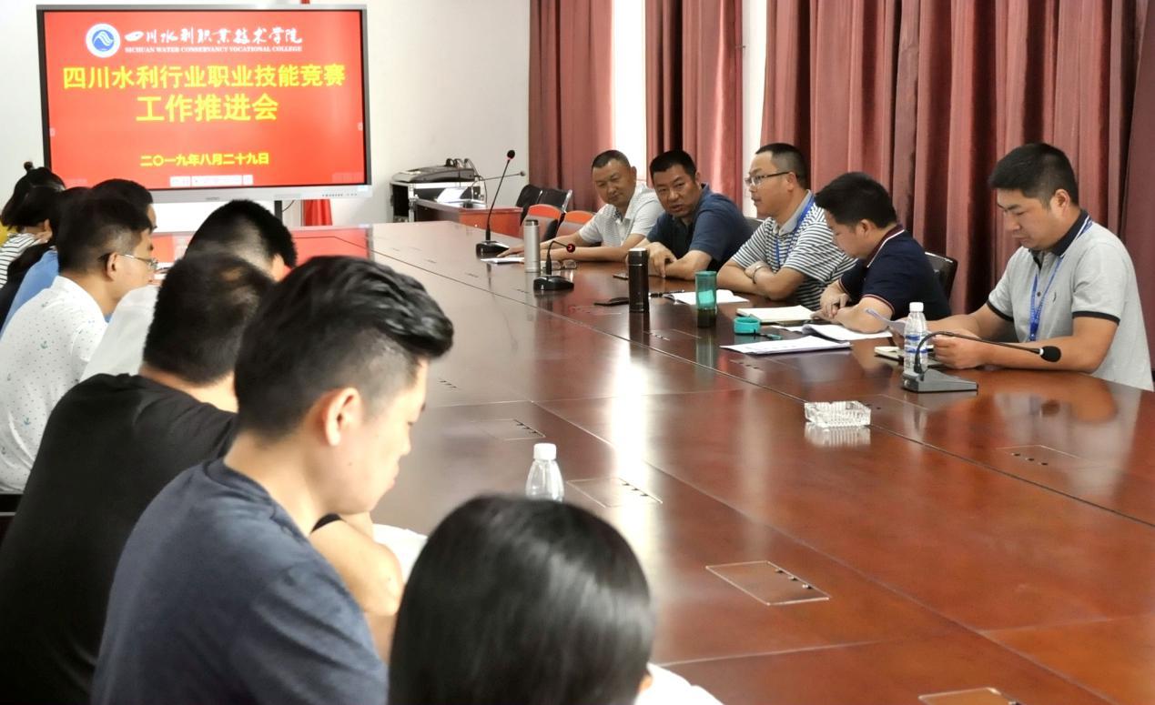 8月29日下午,学院在羊马校区行政楼召开四川水利行业职业技能竞赛工作推进会。副院长张智涌、党政办、教务处 、科研处、水利工程系、测绘地理信息系等部门负责人以及参与本次大赛服务的相关教师参加了会议。